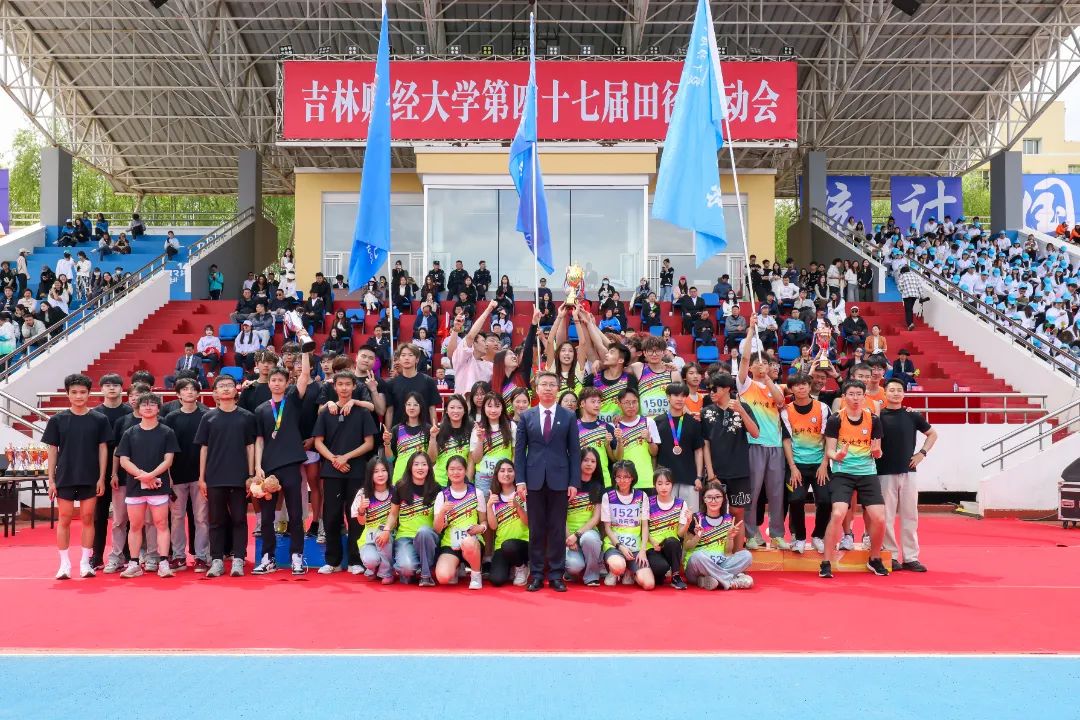 最后,党委副书记刘鹤致闭幕词,他代表组委会向辛勤工作的裁判员、工作人员表示衷心的感谢,向取得优异成绩的运动员们表示热烈的祝贺,向积极参与的每一位同学表示诚挚的谢意!刘鹤指出,运动会不仅是体育竞技的盛会,更是精神风貌的全面展示。学校党委始终将体育育人教育放在重要位置,通过体育实践培养学生的体育精神和文化,检验体育教育成果。本次运动会就是对学校体育教育和学生素质素养教育成果的一次全面展示,全体师生共同见证了开幕式上思政元素与体育精神的完美融合,领略了各代表团的独特魅力以及团体操中洋溢的青春朝气,看到了同学们的拼搏精神,感受到了团队合作的力量,发扬了“更快、更高、更强、更团结”的奥林匹克精神,展现了吉财人追求卓越、勇攀高峰的风采,全体吉财人携手同心,共同奏响了一曲激昂的青春乐章!希望全校师生要以此次运动会为契机,将创先争优、矢志奋斗的精神,内化为学习工作中的不竭动力,以更加饱满的热情、更加健康的体魄、更加坚定的意志,携手并进,为学校高质量发展贡献力量,共创更加美好的明天!