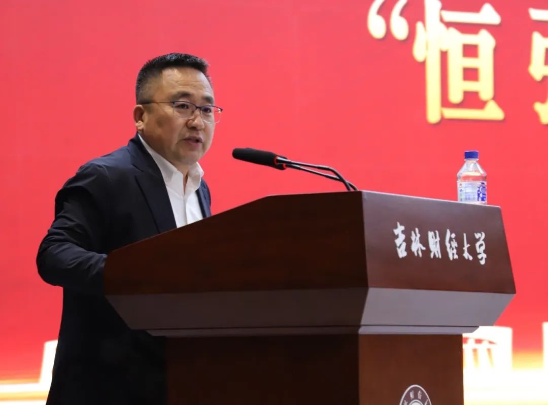 刘鹤代表学校向“恒强”助学金资助方及与会嘉宾致以诚挚敬意与感谢。他回顾了学校79载办学历程中,校友们在商界、学界、基层及公益等领域践行“吉财精神”的卓越贡献。刘鹤指出,“恒强”助学金已成功实现从“单一资助”向“多维赋能”的升级,在经济帮扶、能力培养、就业支持与精神传承等方面成效显著。他勉励受助学子志存高远、勤学笃行、心怀感恩,将个人理想融入“国之大者”,锤炼知行合一的复合能力。最后,刘鹤诚邀校友在建校80周年之际返校团聚,共襄盛举。