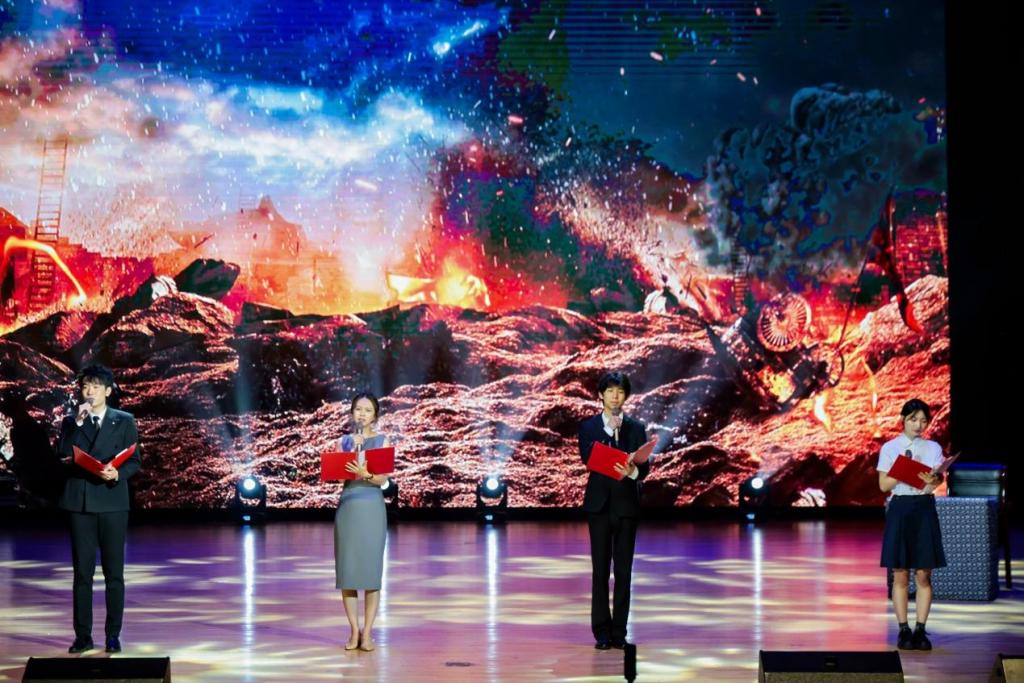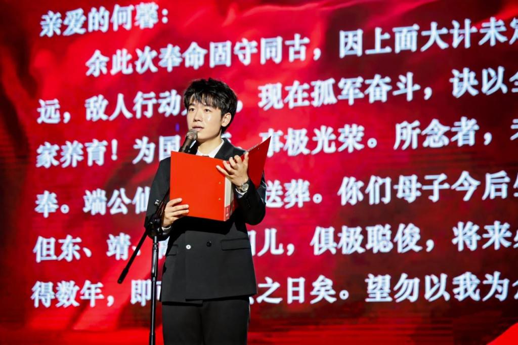 在第一篇章“烽火岁月中的苦难抗争”中,通过诵读姚雉鲁的家书,重现了普通民众在家国沦陷时期的颠沛流离与顽强抗争。军乐团演奏的两首激昂乐曲,以及根据家书改编的诗朗诵《纸短情长里的山河泪》,让在场师生深刻感受到那段艰苦岁月里中华儿女不屈的精神。