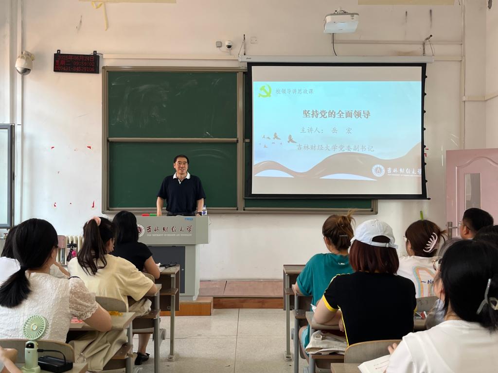 党委副书记岳宏以《坚持党的全面领导》为主题,围绕“中国共产党的领导是中国特色社会主义最本质的特征”“中国共产党领导是中国特色社会主义制度的最大优势”“加强党的全面领导为新时代党和国家事业发展提供了坚强保证”三个要点,结合历史纵深发展与中外延展比较,将深刻的理论知识娓娓道来,既有对历史事件的旁征博引,又融入个人体悟与谆谆教诲,深入浅出地引导同学们深入思考“为什么要坚持和加强党的领导”这一核心命题。