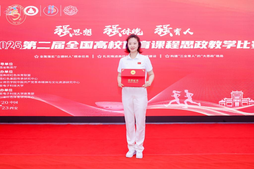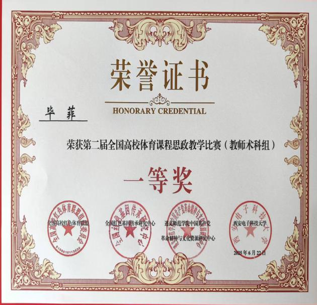 本网讯(体育教研部 供稿)6月22日,第二届全国高校体育课程思政教学比赛在西安电子科技大学落下帷幕。经激烈角逐,kaiyun官网体育教育部教师毕菲以《以背为盾,以心为刃,团结协作的成功密码》为主题,斩获大赛一等奖。