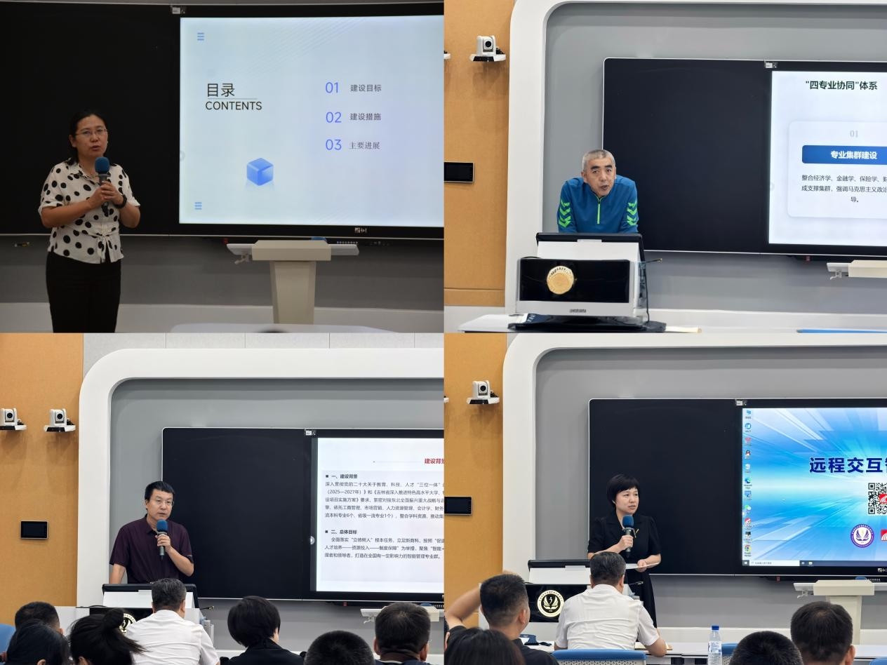 国家级、省级一流本科专业所在学院院长结合专业特点,从专业定位与目标、师资队伍、培养过程、创新举措、学生发展、质量保障等方面进行汇报,剖析专业建设中存在的问题,并提出针对性的改进措施和未来发展规划。各专业群负责人围绕专业群建设及发展规划进行了详细汇报。