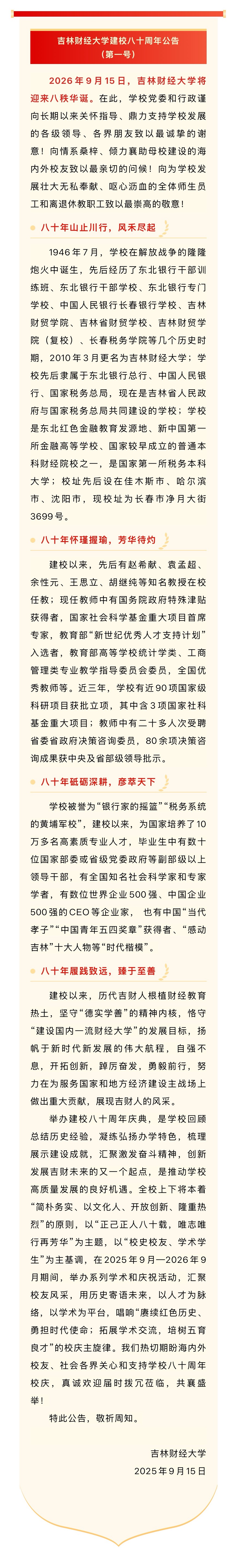 kaiyun体育网页登录入口建校八十周年公告(第一号)