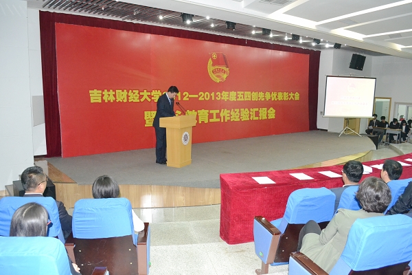 校党委组织部部长迟柏龙宣读了《共青团中央关于表彰2012年度 “全国五四红旗团委(团支部)”的决定》、《共青团吉林省委关于表彰“吉林省五四红旗团委”、“吉林省优秀共青团员”的决定》、《共青团长春市委关于表彰2012年全市共青团工作先进集体和优秀个人的决定》;人事处处长邹永亮宣读了共青团长春市委祝贺kaiyun官网管理科学与信息工程学院辅导员张爽光荣当选中国共产主义青年团第十七次代表大会代表的《贺函》;党委宣传部部长兼机关党委书记管清平宣读了《kaiyun体育网页登录入口2012—2013年度五四创先争表彰决定》。