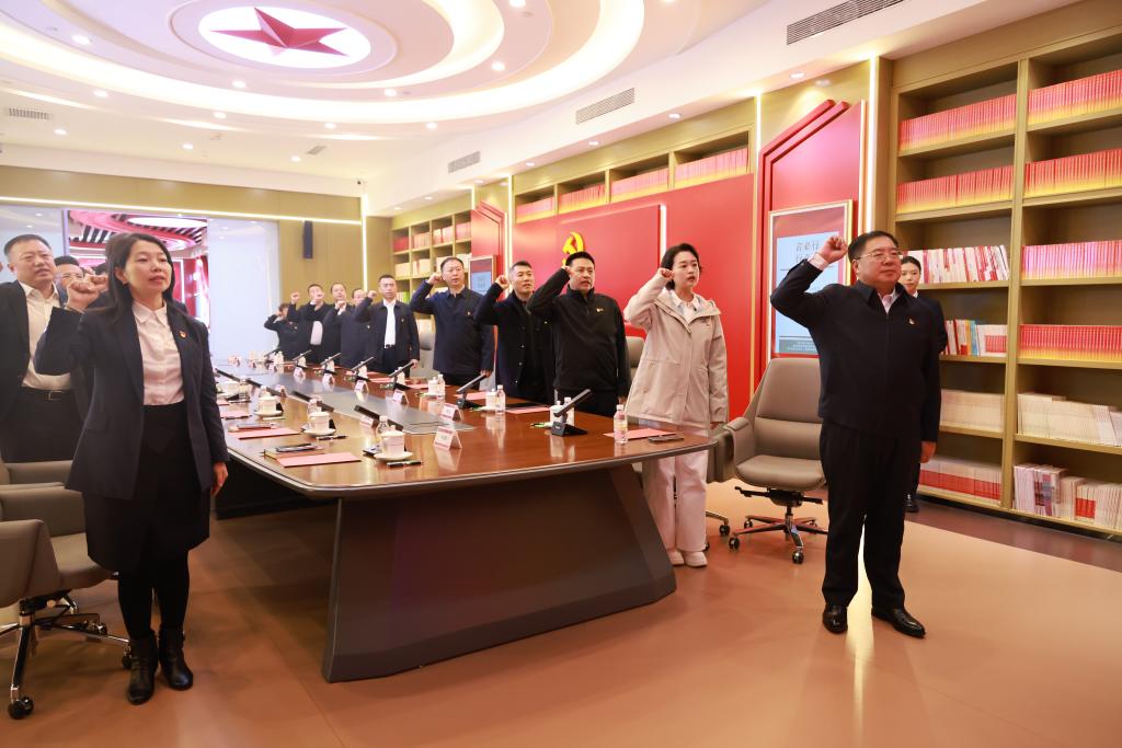 本网讯(计划财务处 供稿)10月16日下午,学校党委书记张炳辉带队赴吉林银行总行,与吉林银行联合开展“同心向党·走进吉行”党建联建活动,并受邀带领在场党员重温入党誓词。副校长庞长亮,吉林银行党委书记、董事长秦季章,党委副书记、行长张洪波等参加活动。