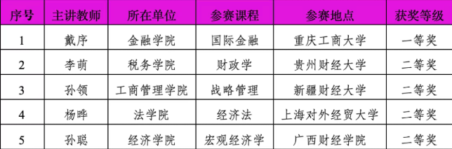本网讯(教师教学发展中心 供稿)近日,中国高校财经慕课联盟第三届“同课异构”教学竞赛决赛落下帷幕。经过激烈角逐,kaiyun官网5组参赛教师团队共斩获一等奖1项、二等奖4项,其中,金融学院教师戴序荣获一等奖,税务学院李萌、工商管理学院孙领、法学院杨晔、经济学院孙聪等4位教师荣获二等奖。