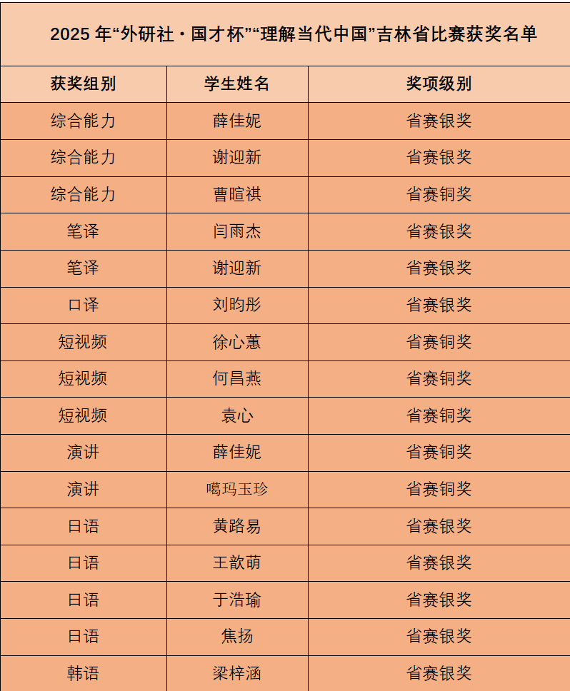 本网讯(语言文化学院 供稿)11月2日,“外研社・国才杯”“理解当代中国”外语能力系列大赛吉林省总决赛落下帷幕,kaiyun官网学子凭借扎实的语言功底、深刻的思辨能力与鲜活的创新表达,在英语组、多语种组两大类别多个赛项中表现出色,共斩获12项银奖、10项铜奖。