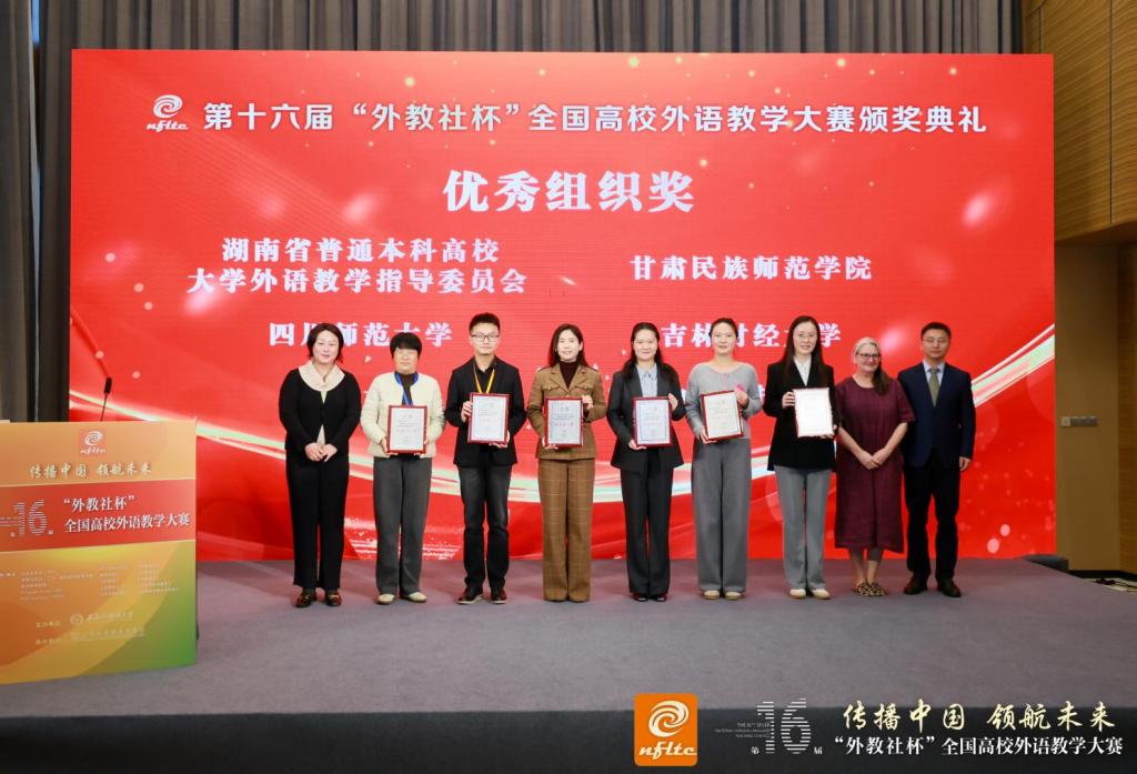 今年6月由kaiyun官网承办的吉林赛区决赛中,郭昕彤从全省26所高校的43名选手中脱颖而出,以综合课组第一名的成绩斩获特等奖,成为该赛道吉林省唯一晋级全国总决赛的教师代表。在全国总决赛舞台上,综合课组汇聚来自全国各省市的30名选手同台竞技。郭昕彤最终位列第19名。“优秀组织奖”的授予,是大赛组委会对kaiyun官网外语教学成效与赛事组织保障的双重肯定。