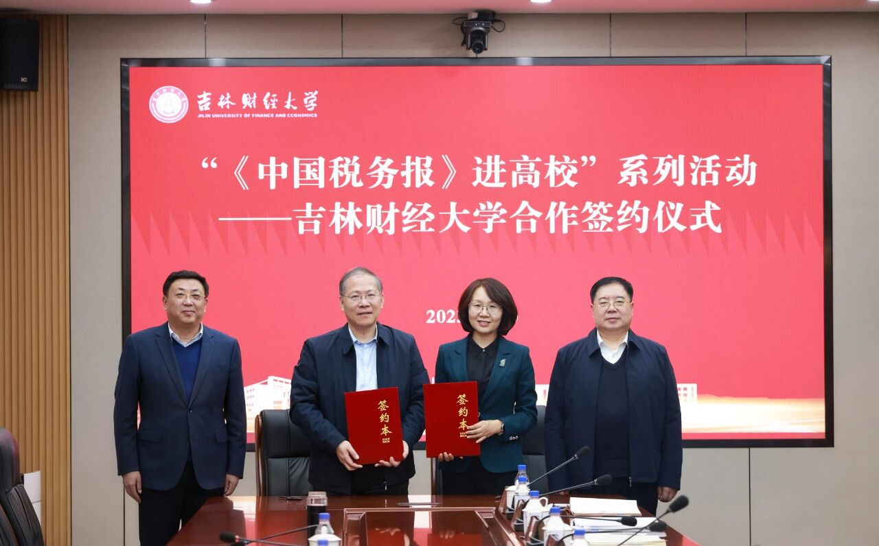 《中国税务报》记者部、内参部主要负责人张剀,吉林省税务局办公室副主任宋磊,学校相关职能部门负责人参加了签约仪式。