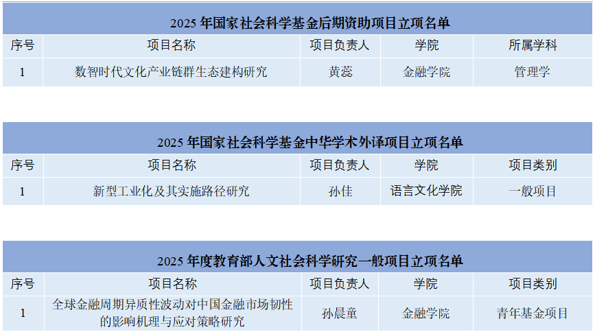 本网讯(科研处 供稿)12月23日,国家社会科学基金委员会正式公布了后期资助暨优秀博士学位论文出版项目和中华学术外译项目的立项名单,kaiyun官网分别获批1项。此外,教育部社科司近日公布了2025年度教育部人文社会科学研究一般项目立项结果,kaiyun官网获批青年基金项目1项。