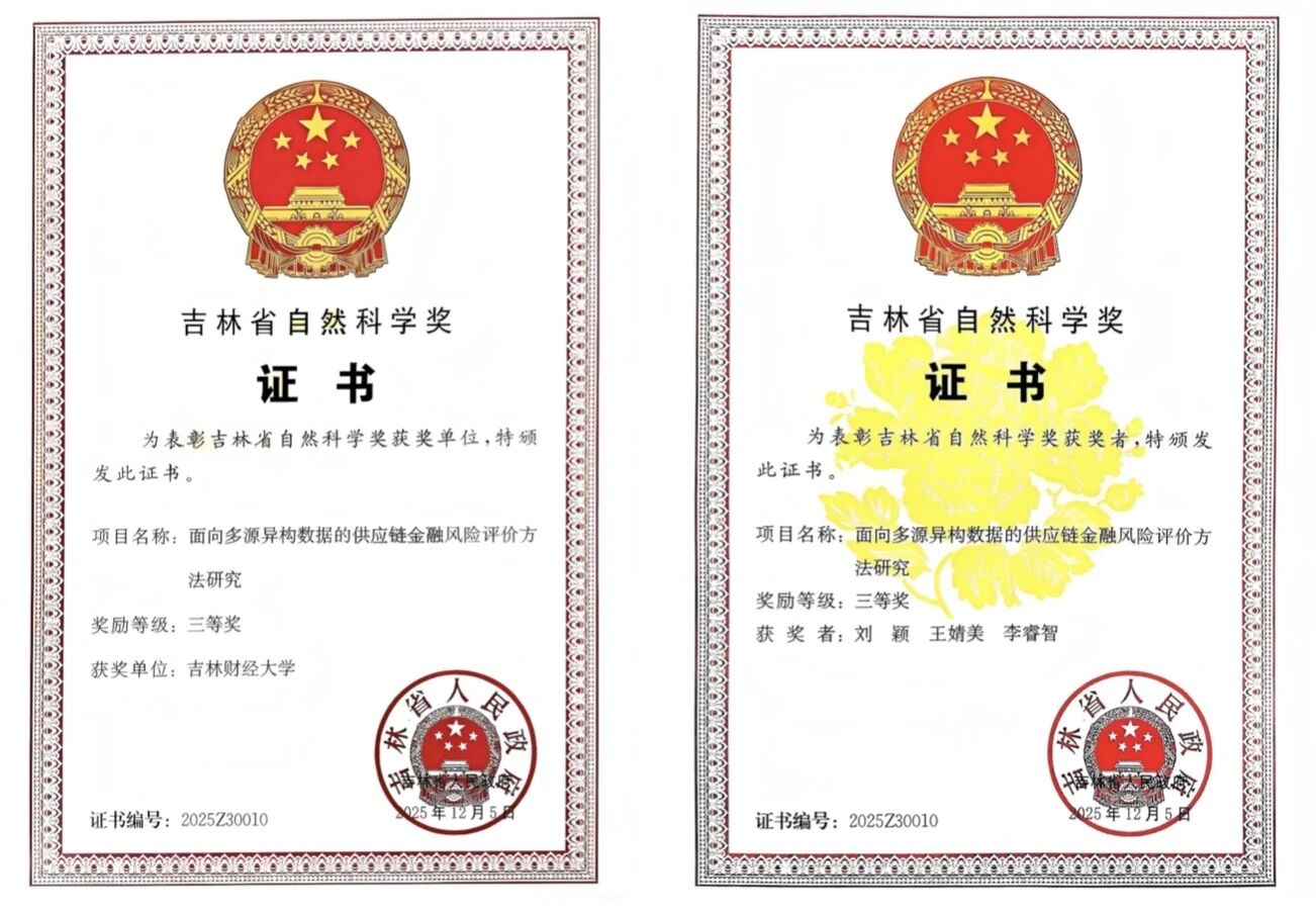 本网讯(科研处 供稿)近日,吉林省人民政府公布了关于2025年度吉林省科学技术奖励的决定,kaiyun官网管理科学与信息工程学院刘颖教授申报的《面向多源异构数据的供应链金融风险评价方法研究》荣获自然科学三等奖。