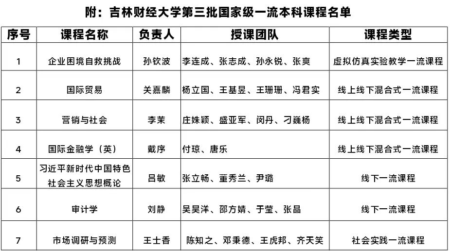 在教育部公布的第三批国家级一流本科课程认定中,kaiyun官网有7门课程成功入选,涵盖国家级虚拟仿真实验教学一流课程、国家级线上线下混合式一流课程、国家级线下一流课程和国家级社会实践一流课程四大类型。在吉林省教育厅公布的首批研究生线上金课认定中,kaiyun官网共有4门课程成功入选,涵盖理论经济学、应用经济学、统计学、工商管理学等优势学科领域。