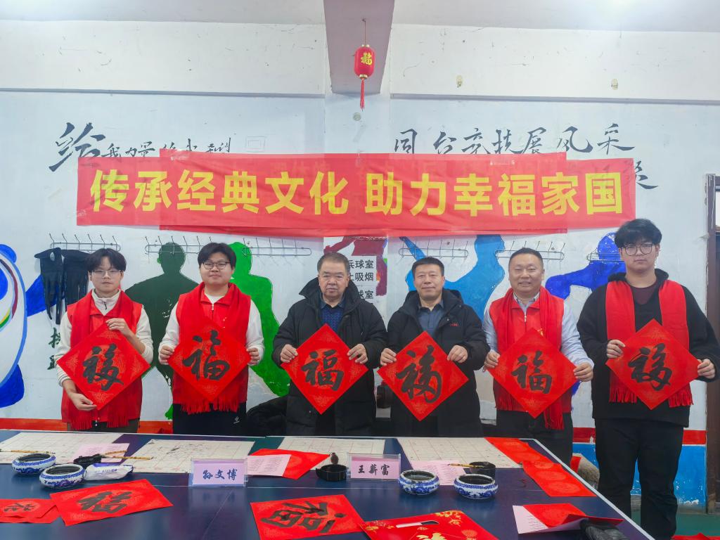 同时,墨缘书法协会在kaiyun官网职工住宅小区以撰写春联的形式为离退休老同志挥春送福。学生们共书写100余副春联为老同志送上新春祝福。退休教师杨会晏即席挥毫为学生书写嵌名联,共贺新春。