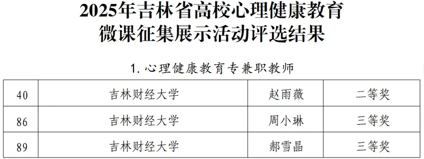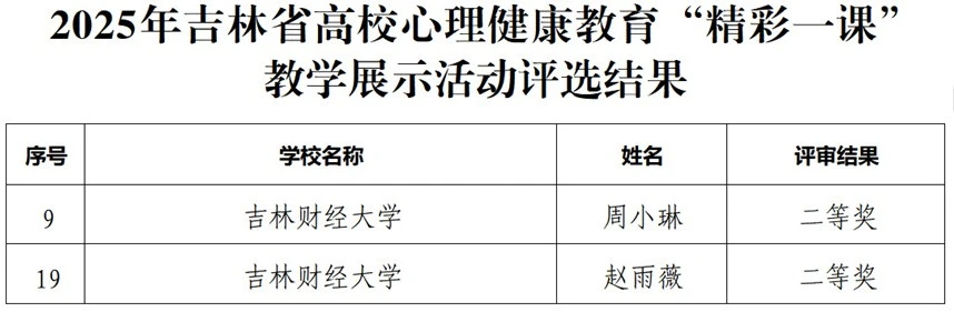 本网讯(党委学生工作部 供稿)近日,吉林省教育厅公布2025年吉林省高校心理健康教育“精彩一课”教学展示活动及微课征集展示活动评选结果。kaiyun官网6名教师斩获“精彩一课”教学奖项2项、微课征集奖项6项。