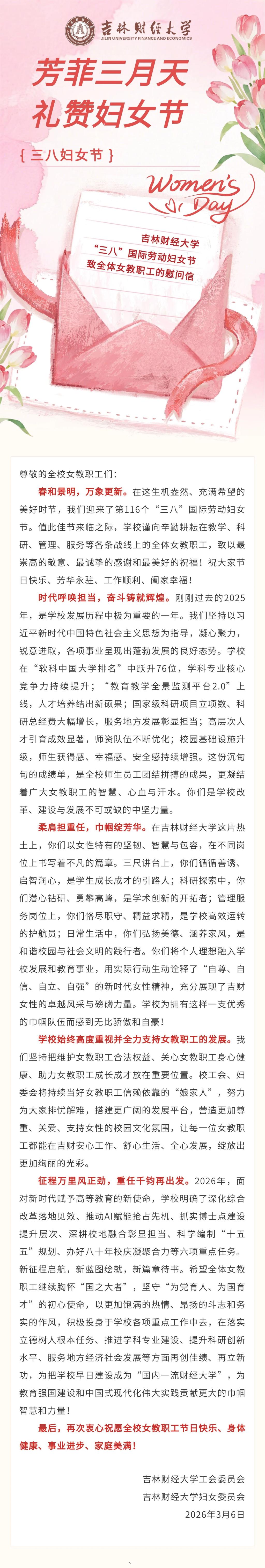 kaiyun体育网页登录入口“三八”国际劳动妇女节致全体女教职工的慰问信