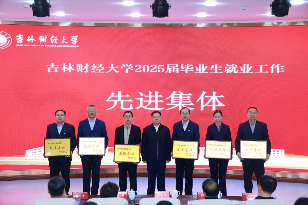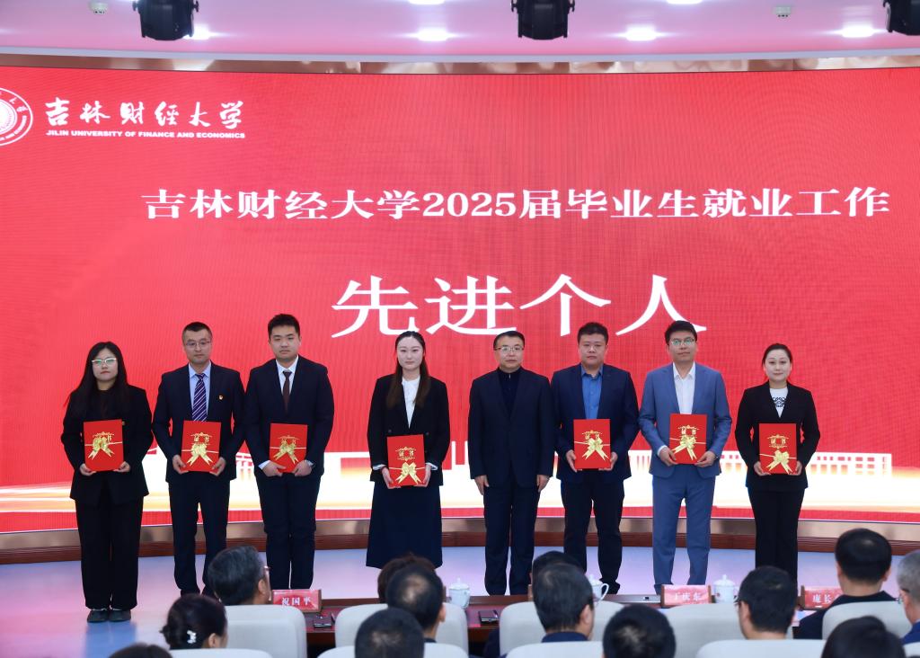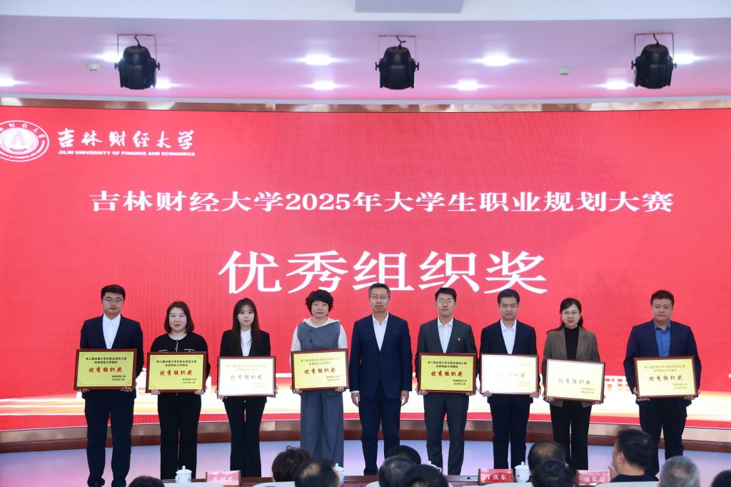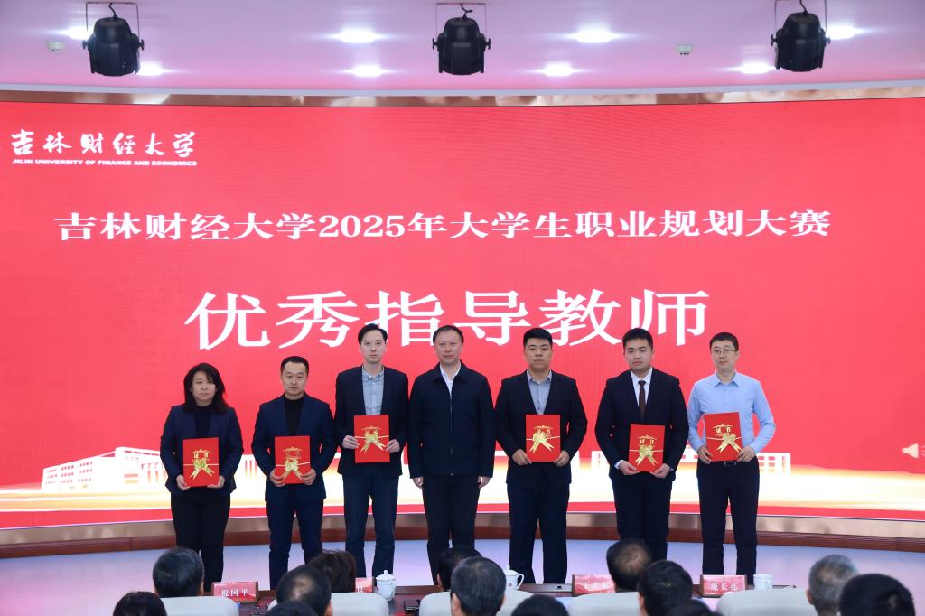 学校领导张炳辉、丁庆东、祝国平、庞长亮为获得2025年毕业生就业工作先进集体和先进个人的代表以及获得学校2025年大学生职业规划大赛优秀组织奖和优秀指导教师的代表颁奖。