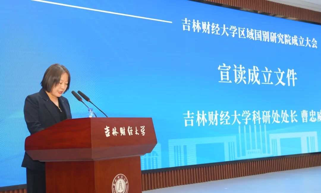 科研处处长曹忠威宣读区域国别研究院成立文件。