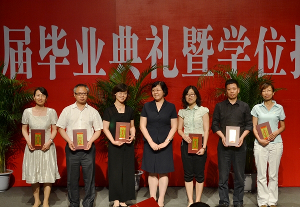 在热烈的掌声中,校党委书记金硕为优秀毕业生代表颁发荣誉证书,校纪委书记王时刚为优秀论文作者代表颁发荣誉证书,副校长杨春梅为优秀论文指导教师代表颁发荣誉证书。