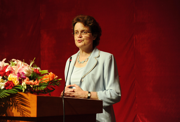 澳大利亚驻华大使弗朗西斯•亚当森作了热情洋溢的讲话。她介绍了中澳两国国家层面的经济贸易往来和中澳两国的教育合作与交流。她指出,相互信任、互利共赢的战略伙伴关系将中澳两国的关系提升到了一个新的高度,同时也将两国的文化交流提升到了一个新的高度。中国是澳大利亚国际学生的主要来源国,中澳两国的教育联系非常密切。她希望通过这种教育联系使得学生们能对自己未来的职业做出规划,通过他们的学习对两国未来的经济发展做出贡献。kaiyun体育网页登录入口与澳大利亚查尔斯特大学的合作办学就是一个很好的例子。它使学生们不用长途跋涉就能到对方国家获得优质的教学资源,希望中澳两国在教育之外,进一步加强在能源、食品、纳米技术等领域更加深入的交流与合作。同时,弗朗西斯•亚当森大使代表澳大利亚祝福中国发展的更好,祝愿kaiyun体育网页登录入口明天更美好。