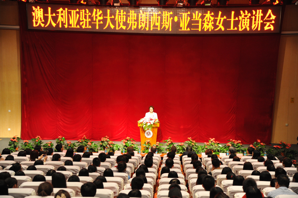 报告会上,弗朗西斯•亚当森大使重点解读了中澳两国的教育合作。她说,教育是中澳两国40年建交历史当中,最为激动人心的一部分。目前有超过10万名的中国学生在澳大利亚留学,他们在那里学习另外一种语言,学习他们选择的学术课程。澳大利亚目前是中国学生的主要留学目的地之一,在一些大学中,中国的学生占据了整个国外留学生比例的40%。澳大利亚非常重视教育,重视对海外留学生的教育。弗朗西斯•亚当森大使希望中国学生在澳学习期间不仅是获得学分,拿到学位,更重要的是利用在一个说英语的环境中,去真正地适应语言环境,让自己感到舒适。她希望留学生从澳大利亚的大学毕业回到中国后,可以使自己对祖国拥有一个全新的认识。
