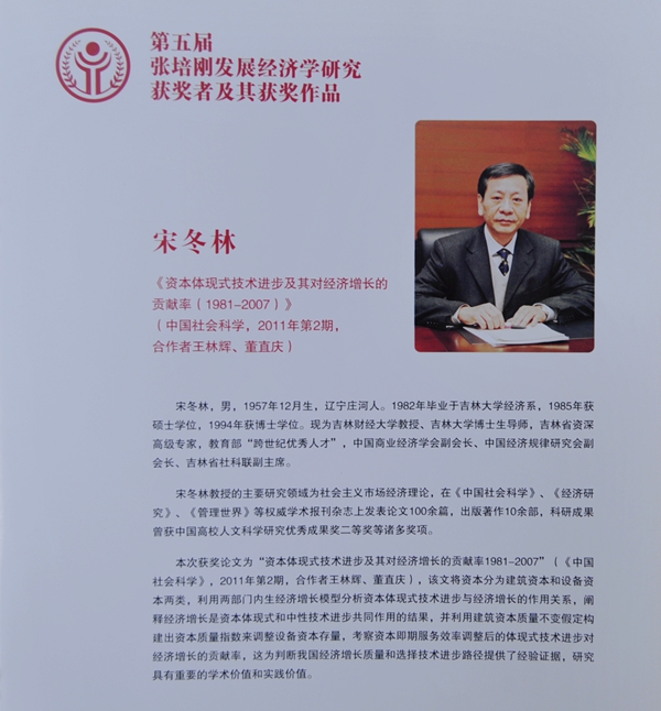 第五届张培刚发展经济学优秀成果奖校长宋冬林及其获奖作品简介如下: