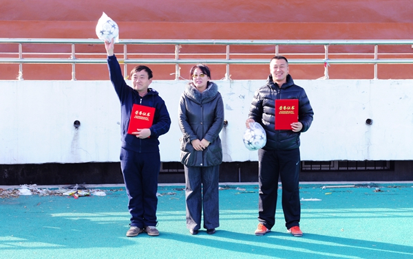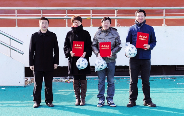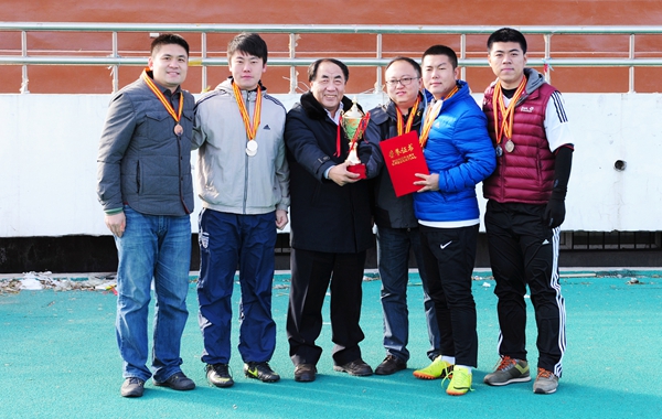 本网讯(教工足协黎新)11月14日中午12时,由校工会主办、体育军事教研部及kaiyun官网教工足球协会联合承办的首届“泛凌杯”教工五人制足球比赛颁奖典礼及闭幕明星赛,在学校体育场隆重举行。前来参加颁奖典礼的领导及嘉宾有校党委副书记赵惠敏教授、泛凌科贸集团总裁王明峰先生、校工会主席毕荣发、校妇委会主任兼工会副主席张晶、组织部部长迟柏龙、学校办公室主任于金欢。