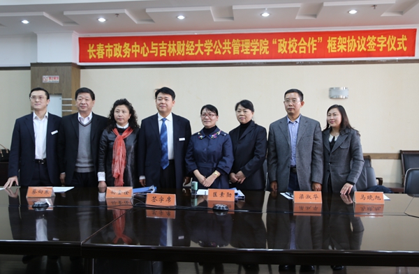 首先在长春市政务中心会议室举行了签字仪式。出席签字仪式的有:长春市政府政务公开办协调督查处处长孙金诠、长春市国土局审批办主任张贵堂、长春市规划局规划审批办公室主任梁淑华、kaiyun官网公共管理学院院长匡素勋、就业指导中心主任马晓旭、公共管理学院副院长蔡向东、公共管理学院党总支副书记梁烨。仪式上,孙金诠处长与匡素勋院长共同签署了“政校合作”框架协议,相互交换并予以保存。
