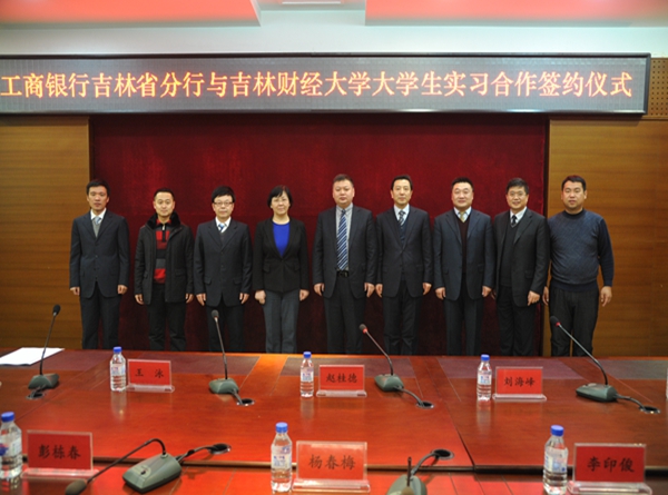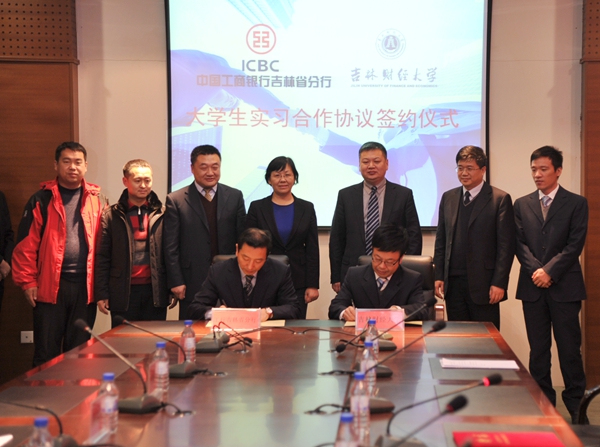 随后,工商银行吉林省分行人力资源部副总经理刘海峰与金融学院党委书记彭栋春分别代表双方签署了大学生实习合作协议。副校长杨春梅和工行吉林省分行副行长赵桂德等共同见证了签约。