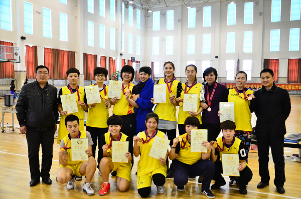 高校乙组乒乓球比赛中有19所高校派队参加本次比赛,由杜红光老师带领8名运动员组成的校乒乓队在所有七项比赛中获得3金3铜的成绩。其中女团、女双、男双获得金牌,女单、男单、混双获得铜牌。