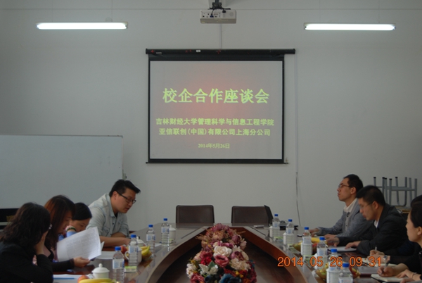 本网讯(管理科学与信息工程学院 供稿)5月26日,管理科学与信息工程学院与亚信科技(中国)有限公司上海分公司(以下简称“亚信科技”)在综合楼207会议室进行了我院2011级本科生(计算机专业,信息管理与信息系统专业,电子商务专业三个专业)实习生招聘与选拔工作。以此为契机,为进一步深化校企合作内涵建设,展示校企合作阶段性成果并探讨未来发展战略,管理科学与信息工程学院在207会议室举办了“校企深度合作座谈会”,亚信科技(中国)有限公司华中区人力资源经理丁伟、BOSS测试部经理姚蕾、CRM开发部经理李东英、BDX部经理张俊、管理科学与信息工程学院院长王丽敏教授及各专业系主任出席了本次会议。