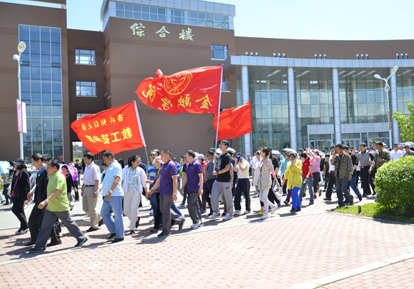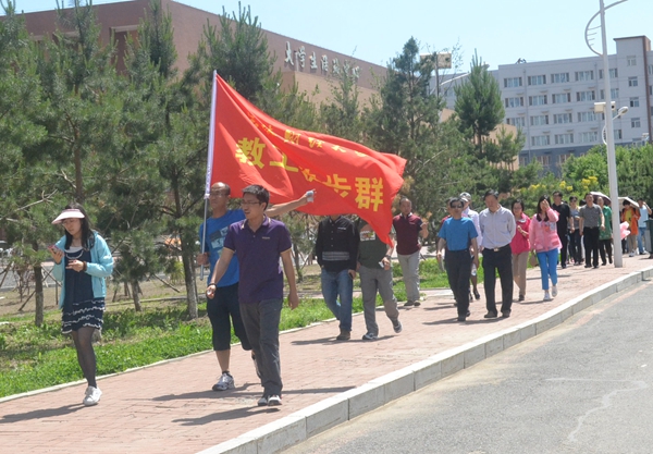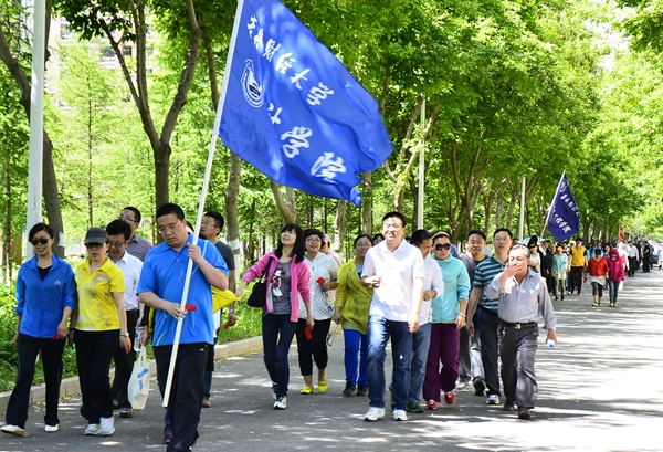 本网讯(记者 郭建辉 摄影 杨宁 赵小莹)夏日的校园,绿树成荫,繁花点点,校园里呈现出一片秀美宜人的景象。为了迎接中国传统节日端午节,丰富教职工生活,5月28日中午,校工会、校妇委会组织了“爱我财大教工校园徒步行”活动。副校长杨春梅、副校长张越杰、校党委副书记赵惠敏以及全校教职工参加了徒步行活动。在热烈的气氛中,校党委副书记赵惠敏宣布徒步行活动正式开始,副校长杨春梅打响了徒步行活动的发令枪。