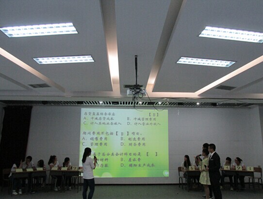 在主持人介绍了规则后,比赛正式开始。大赛共分为四个关节,第一个环节“听写狂人”,考察选手对语音语调的掌握,经过两轮比赛,应用数学学院、会计学院领先。第二个环节为“百变汉字”,选手需要在原有字的基础上增添偏旁部首获得新的汉字,场上的四组队员争分夺秒,在紧张的气氛中发挥自己所能为班级增光添彩。第三个环节为“我爱猜名词”,名词分类囊括经济、历史、生活、人文地理、娱乐多个方面,全面考核了选手们的综合素质。