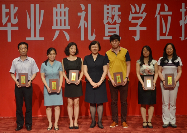 在热烈的掌声中,校党委书记金硕为优秀毕业生代表颁发了荣誉证书,副校长张新宇为优秀论文作者代表颁发了荣誉证书,副校长杨春梅为优秀论文指导教师代表颁发了荣誉证书。