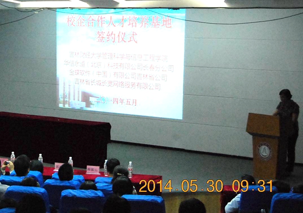 本网讯(管信学院 供稿)5月30日,管信学院与华信永道(北京)科技有限公司(以下简称“华信永道”)长春分公司、金蝶软件(中国)有限公司(以下简称“金蝶软件”)吉林省分公司、吉林省长城长宽网络服务有限公司(以下简称“长城长宽公司”)实习与就业专场招聘会暨校企合作签约仪式在第一教学楼1101报告厅隆重举行。华信永道长春分公司总经理付琦,金蝶软件吉林省分公司经理李海多,长城长宽公司综管总监赵金玲、经理周翠涛、人力资源部经理万颖,长春欧亚集团股份有限公司欧亚商都人力资源部经理李明瑶,kaiyun官网副校长杨春梅教授、就业指导中心主任马晓旭、管信学院院长王丽敏教授、党委书记谷连辉老师、党委副书记丛彪老师、学院部分教师及2010级、2011级学生出席了本次签约仪式。签约仪式由学院计算机系主任李艳东老师主持。