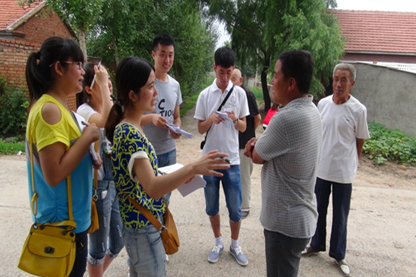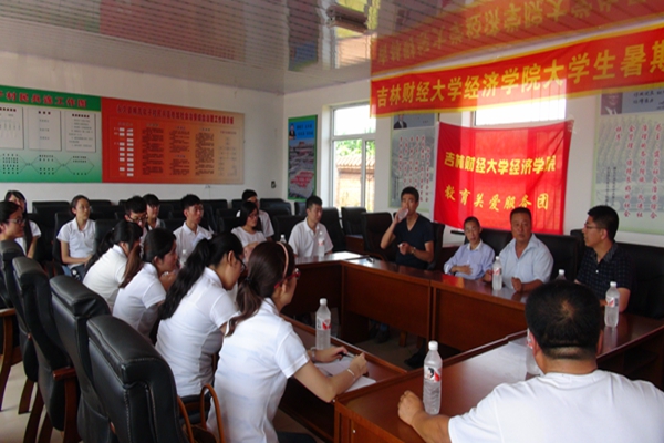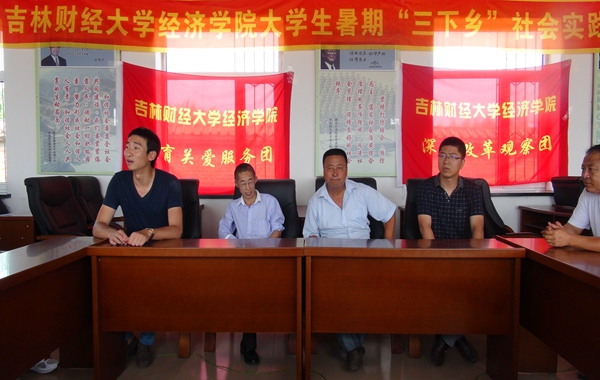 本网讯(经济学院 骆鑫)为贯彻落实团中央、中宣部、中央文明办、教育部等部门联合下发的《关于开展2014年全国大中专学生志愿者暑期文化科技卫生“三下乡”社会实践活动的通知》精神, 7月14日——17日经济学院“路径调查小分队”以“为祖国勤学修德•以实践明辨笃实”为主题第九次赴松原市长岭县永久镇柳蒿泉子村开展为期四天的暑期社会实践调研活动。本次活动以学习贯彻习近平总书记五四重要讲话为契机,坚持“受教育、长才干、作贡献”的宗旨,引导学生在社会实践中了解国情社情,培育和弘扬社会主义核心价值观。结合团中央将在全国层面将选拔组建900支国家级重点团队,开展形式多样、内容丰富的暑期社会实践活动的工作思路,本次社会实践调研活动重点围绕“深化改革观察”、“教育关爱服务”两条主线开展调研。学院副院长高冠中、党总支副书记赵彦双、团委书记骆鑫及学院15名学生参与了本次活动。(其中两名研究生周晓和连新凯作为“研本互助成长计划”助理导师协助专任课教师参与了调研指导)