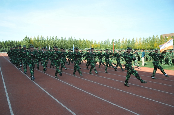 开学典礼暨军事课总结表彰大会在庄重的国歌声中开始。经过三周的紧张训练,2014级新生在吉林省军区和装甲兵技术学院各位教官的指导下,高标准地完成了这次军事技能训练和军事理论学习,培养了不怕困难、敢于吃苦、雷厉风行、团结协作的意志品质。