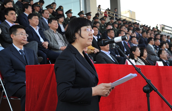 开学典礼暨军事课总结表彰大会上,吉林省优秀教师、应用数学学院李延敏教授代表全体教师讲话,希望同学们在四年中珍惜时间,学有所成。校十佳大学生、公共管理学院1109班王梦思同学、外国语学院1429班康露文同学分别代表在校生和全体新生作了发言。