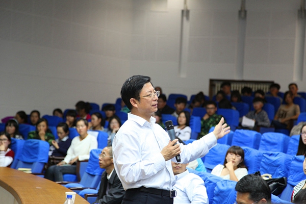 随后,全体师生在党总支副书记赵彦双的主持下进行了师生互动环节,本科生们积极踊跃地向各位资深教授提出自己的疑问,各位教授耐心的回答、详细的讲解,获得了同学们的广泛认可并报以热烈的掌声。在师生互动其乐融融的氛围下,经济学改革与发展报告暨研究生动员说明会于21:00圆满结束。此次会议不仅拉近了师生的距离,更引导本科生对未来的发展道路进行了深入思考。经济学院党总支下一步将巩固党的群众路线教育成果,广泛动员学院教授、讲师为本科生开展学术报告、学术沙龙等活动,浓郁学术氛围、密切师生关系,从而有效推动学院学风、教风、院风建设。(审核人 王玉柱)