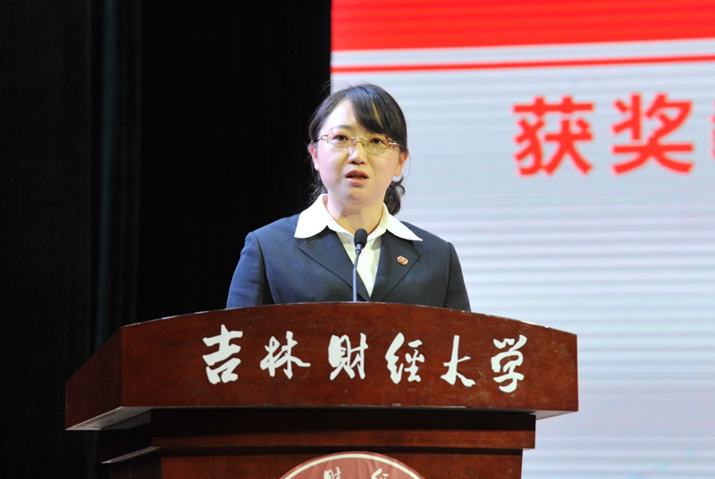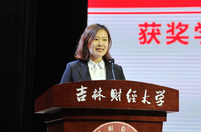 九台农商银行金融学院2016级学生阚文笛代表获奖学生发言。她表示,在今后的学习和生活中,将更加努力,不断突破自我,为学校、为社会贡献属于自己的力量。