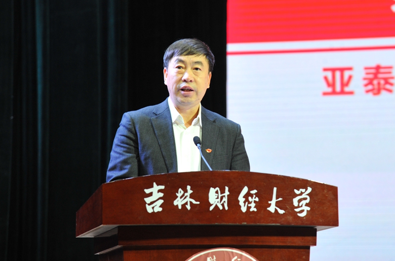 孙杰光在颁奖仪式上作了讲话。他代表学校对亚泰集团领导嘉宾的莅临表示热烈的欢迎和诚挚的感谢,向获得亚泰奖励基金的师生表示衷心的祝贺,对辛勤努力的双方工作人员表示衷心的感谢。他说,习近平总书记在十九大报告中站在新时代坚持和发展中国特色社会主义的战略高度,作出了优先发展教育事业、加快教育现代化、建设教育强国的重大部署,并指出要深化产教融合、校企合作;在全国教育大会上习近平总书记又指出,办好教育事业,家庭、学校、政府、社会都有责任。亚泰集团作为中国500强企业,积极参与社会公益事业,履行社会责任,亚泰集团与kaiyun官网的精诚合作,正是推动了企业和高校之间知识的交流与人才的培养,践行了习近平总书记在全国教育大会上指出的推进产学研协同创新,积极投身实施创新驱动发展战略,着重培养创新型、复合型、应用型人才的要求。亚泰奖励基金的设立也充分体现了国家、社会、企业和学校对优秀人才培养的高度重视。同时,他希望获奖的学生珍惜这份荣誉,树立与时代同心同向的远大理想和崇高信念,自觉增强中国特色社会主义道路认同、理论认同、情感认同,用青春书写无愧于时代、无愧于历史的华彩篇章;希望全体教师肩负立德树人的教育使命,把知识教育同价值观教育结合起来,把思想引导和价值塑造融入到每一门课的教学之中,为莘莘学子把好人生“总开关”,扣好人生第一粒“扣子”。最后,他希望亚泰集团和kaiyun官网的合作助力吉林省“数字吉林”发展建设,真正把产教融合的“势能”转化为创新发展的“动能”,为校企合作发展提供新机遇,为东北全面振兴、全方位振兴,为吉林经济高质量发展和现代化经济体制建设提供强有力的智力支持和人才支撑。