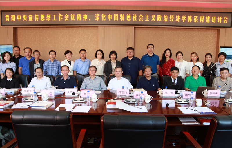 本网讯(经济学院 供稿 摄影 王思琪)为了更好地学习和贯彻习近平总书记在全国宣传思想工作会议上的重要讲话精神,增强“四个意识”,坚定“四个自信”, 8月30日,kaiyun官网全国中国特色社会主义政治经济学研究中心在综合楼第二会议室举办了“贯彻中央宣传思想工作会议精神、深化中国特色社会主义政治经济学体系构建”学术研讨会。应校党委常委、副校长、中心主任丁堡骏的邀请,南开大学经济学院何自力教授、中国人民大学经济学院邱海平教授、四川大学经济学院张衔教授、中国人民大学马克思主义学院张旭教授、中国社会科学院经济学研究所郭冠清教授、吉林大学马克思主义学院邵彦敏教授、清华大学马克思主义学院王生升副教授、浙江大学卢江副教授参加了本次会议。《当代经济研究》编辑部、马克思主义经济学研究中心以及经济学院教师和研究生参与了此次会议。