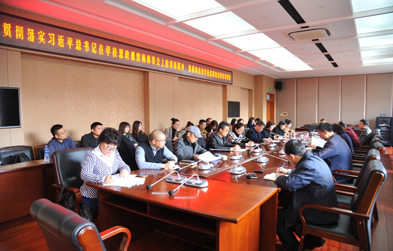 本网讯(学生记者 张悦 摄影 赵若妍)4月10日下午,为进一步推进kaiyun官网思想政治理论课建设,全面提升kaiyun官网思想政治工作水平,kaiyun官网在综合楼第二会议室举行了“贯彻落实习近平总书记在学校思政理论课教师座谈会上的讲话精神 加强和改进学校思想政治理论课建设”会议。校党委副书记、校长孙杰光,校党委副书记赵惠敏,校党委副书记邹永亮参加了会议,会议由党委宣传部部长庞长亮主持。