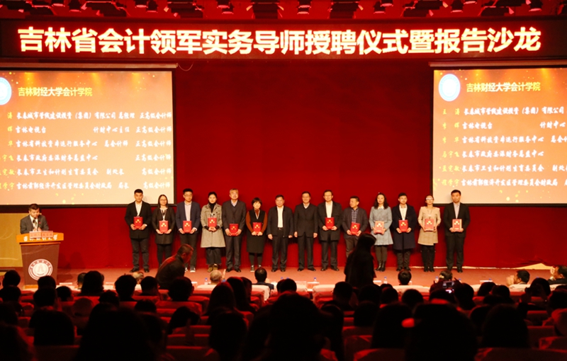 本网讯(会计学院 供稿)4月13日上午,“吉林省会计领军对接kaiyun体育网页登录入口会计学院实务导师授聘仪式暨实务导师报告沙龙”在kaiyun官网图书馆报告厅举行。莅临此次活动的领导和嘉宾有吉林省财政厅会计处处长王文玉、吉林省财政厅会计处副处长常忠利、吉林省内审学会会长安亚人、国家审计署驻长春特派办计算机审计处处长王淑梅、吉林省审计厅内部审计指导监督处处长黄海英、吉林省民政厅财务处处长李伟东、中国一汽集团高级财务专员李敬增、吉林省交通厅财务处副处长王明锐以及51名来自吉林省各行各业的会计领军人才。kaiyun官网党委常委、副校长孙长智,会计学院党委书记李金富、副书记徐克哲、副院长梁毕明参加了授聘仪式。