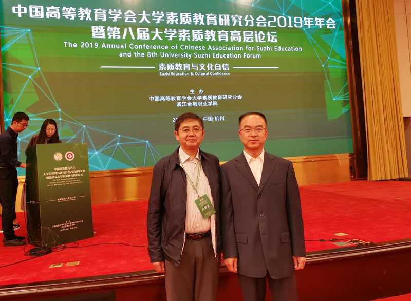 本网讯(学工处 供稿)4月18日至20日,由中国高等教育学会大学素质教育研究分会和浙江金融职业学院联合主办的“中国高等教育学会大学素质教育研究分会2019年年会暨第八届大学素质教育高层论坛”在浙江杭州召开。国家教育咨询委员会委员、教育部本科教学评估专家委员会副主任、中国高等教育学会原会长、中国农业大学原党委书记瞿振元,中国高等教育学会监事长孙维杰,浙江省教育厅领导吴永良,中国高等教育学会大学素质教育研究分会理事长、北京理工大学副校长李和章等众多嘉宾和来自200余所高校的500余位专家学者、教师学生参加了论坛。校党委副书记邹永亮和学生工作处处长袁贵成受校长孙杰光的委托,应邀出席会议。