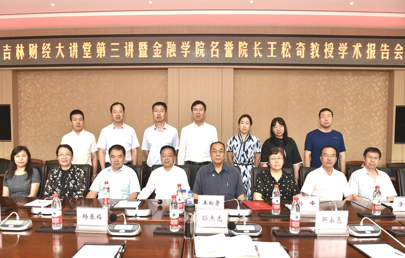 聘任仪式结束后,“吉林财经大讲堂第三讲暨金融学院名誉院长王松奇教授学术报告会”在综合楼第二会议室开讲。孙杰光、金融学院师生以及各学院骨干教师出席报告会。报告会由科研处郭天宝处长主持,他首先向师生介绍了王松奇教授的学术科研情况以及吉林财经大讲堂的设立情况和发展方向。