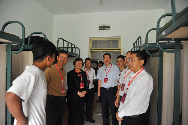 从大学生活动中心出来,学校领导一行来到了新生公寓,查看公寓的环境、设施、卫生以及安全等情况,并嘱咐后勤部门做好相关工作,为新生提供良好的住宿条件。
