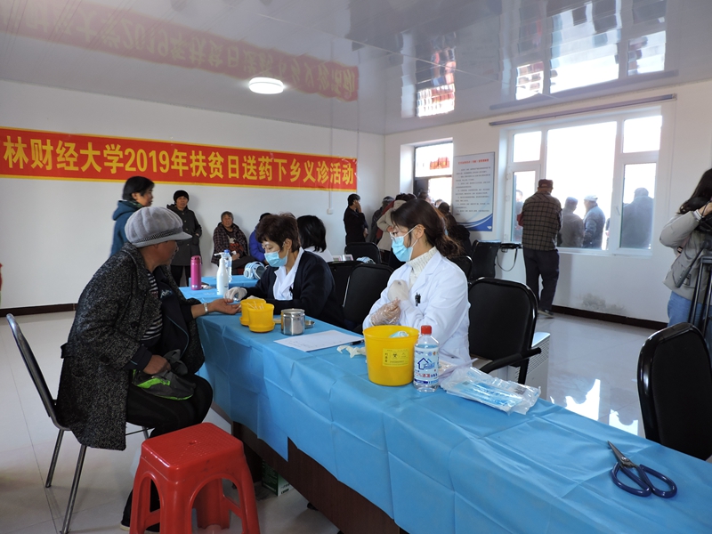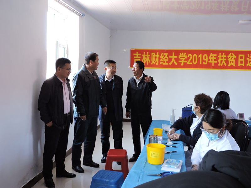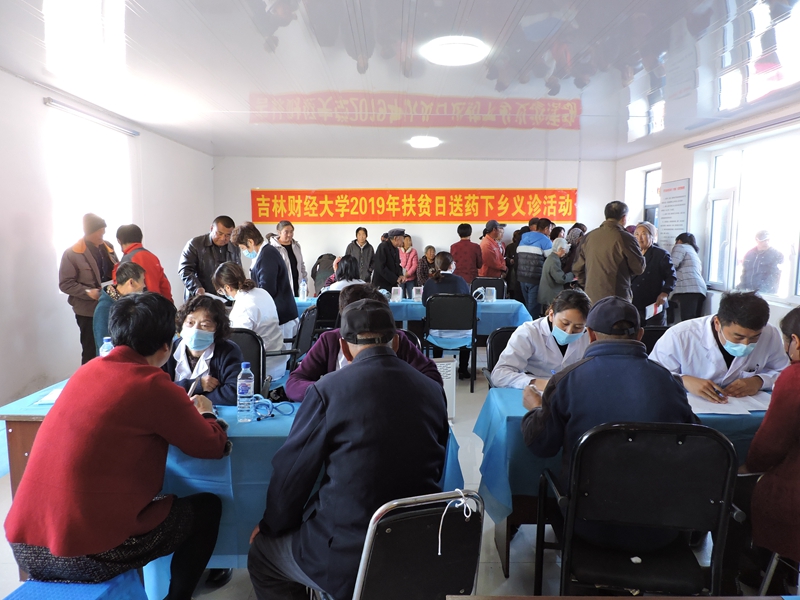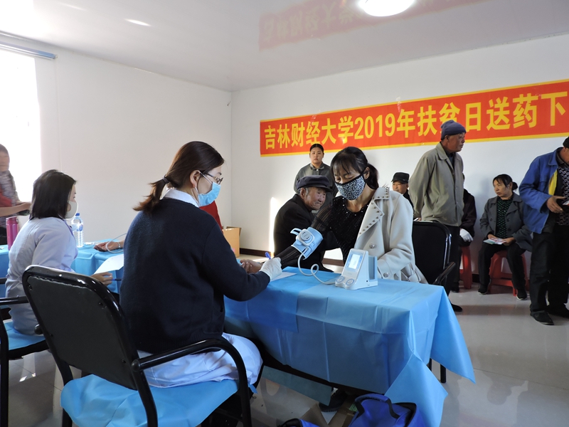 本网讯(校工会 供稿)为贯彻落实吉林省脱贫攻坚领导小组办公室《关于印发〈吉林省2019年扶贫日系列活动方案〉的通知》(吉脱贫办【2019】26号)文件精神,进一步密切党群干群关系,推动脱贫攻坚包保帮扶工作进程,学校党委结合“不忘初心、牢记使命”主题教育和脱贫攻坚帮扶村实际,组织学校帮扶干部和校医院医护人员到八面村开展了“'不忘初心、牢记使命',脱贫攻坚在行动,送医送药暖民心”主题帮扶活动。