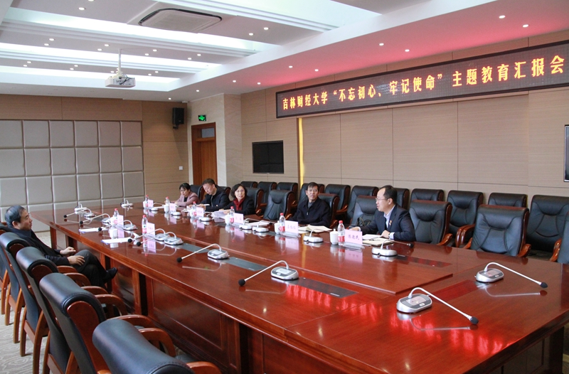 随后,在综合楼第一会议室举行了“不忘初心、牢记使命”主题教育汇报会。学校领导马尚、赵惠敏汇报了学校“不忘初心、牢记使命”主题教育开展情况。金融学院党委书记陈德民汇报了本学院“不忘初心、牢记使命”主题教育开展情况。