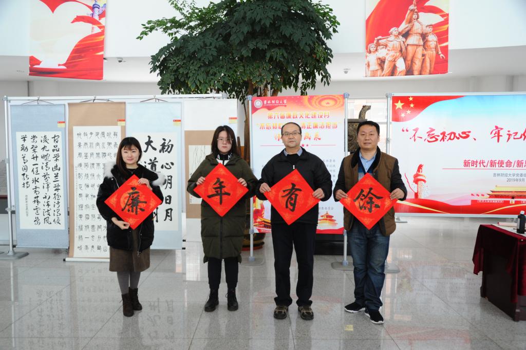 “政通人和”、“两袖清风”、“廉年有余”……师生作者还进行了现场书法表演,把此次活动推向了高潮。税务学院退休教授杨斌、图书馆馆员马常余、法学院辅导员张馨元、统计学院学生唐铭遥,纷纷挥动手中的毛笔,用不同内容的廉政词语,阐释了廉政文化。马常余老师说:“作为广大师生书画爱好者,我们以饱满的创作热情,积极地投身到此次廉政文化建设月活动当中去。希望通过廉政文化与书画艺术相结合的方式,进一步增强廉政文化的教育力、传播力和感染力,大力营造‘不忘初心使命,清正廉洁担当’的校园文化氛围”。