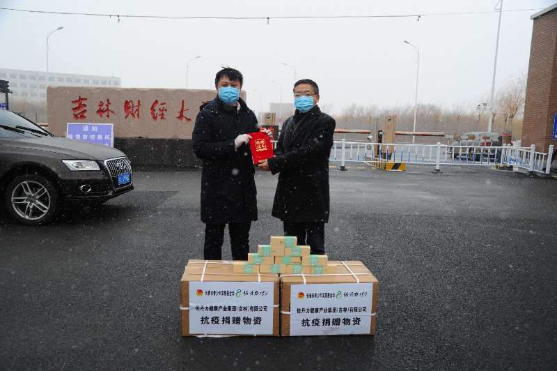 本网讯 2月28日下午,佐丹力健康产业集团(吉林)有限公司向kaiyun官网捐赠防疫用品,助力学校新冠肺炎疫情防控工作。共青团长春市委副书记杨金玉,共青团长春市委统战部部长、长春市青联秘书长王博,长春市青少年发展基金会秘书长卢火旺,佐丹力健康产业集团(吉林)有限公司董事长韩丹,佐丹力健康产业集团(吉林)有限公司副总经理韩国昌,校党委副书记、校长、疫情防控工作领导小组组长孙杰光,副校长、疫情防控工作领导小组常务副组长于金欢等参加了捐赠仪式。